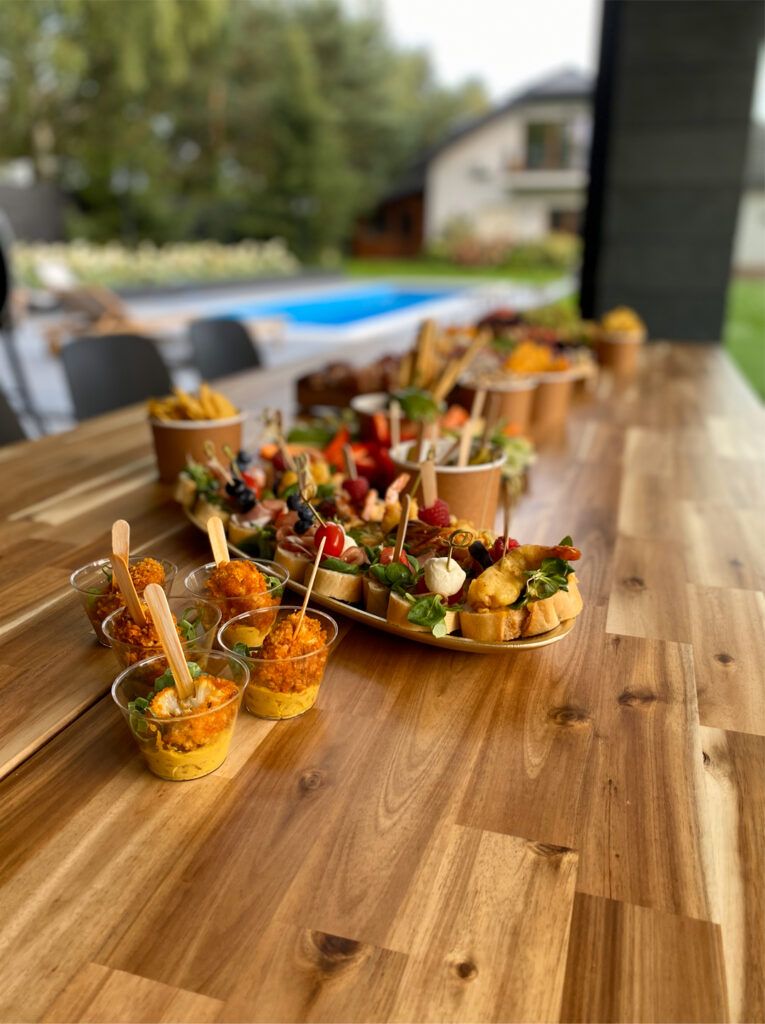 Oferujemy profesjonalne usługi cateringowe, które zaspokoją potrzeby każdej imprezy – od kameralnych spotkań po wielkie wydarzenia. Nasze menu jest pełne świeżych, starannie przygotowanych potraw, które zachwycą Twoich gości. Przygotowujemy dania dostosowane do różnych diet i preferencji, a nasz zespół zadba o każdy detal, aby Twoja uroczystość przebiegła bezproblemowo. Wybierz nasz catering i ciesz się smakiem oraz jakością, które pozostaną w pamięci na długo, W naszej ofercie znajdziesz kreatywne kompozycje, takie jak mini burgery, koreczki, sałatki w stoikach, czy eleganckie tartinki. Wszystkie dania przygotowywane są z najwyzszej jakosci sktadników, a ich róznorodność zaspokoi różne gusta.